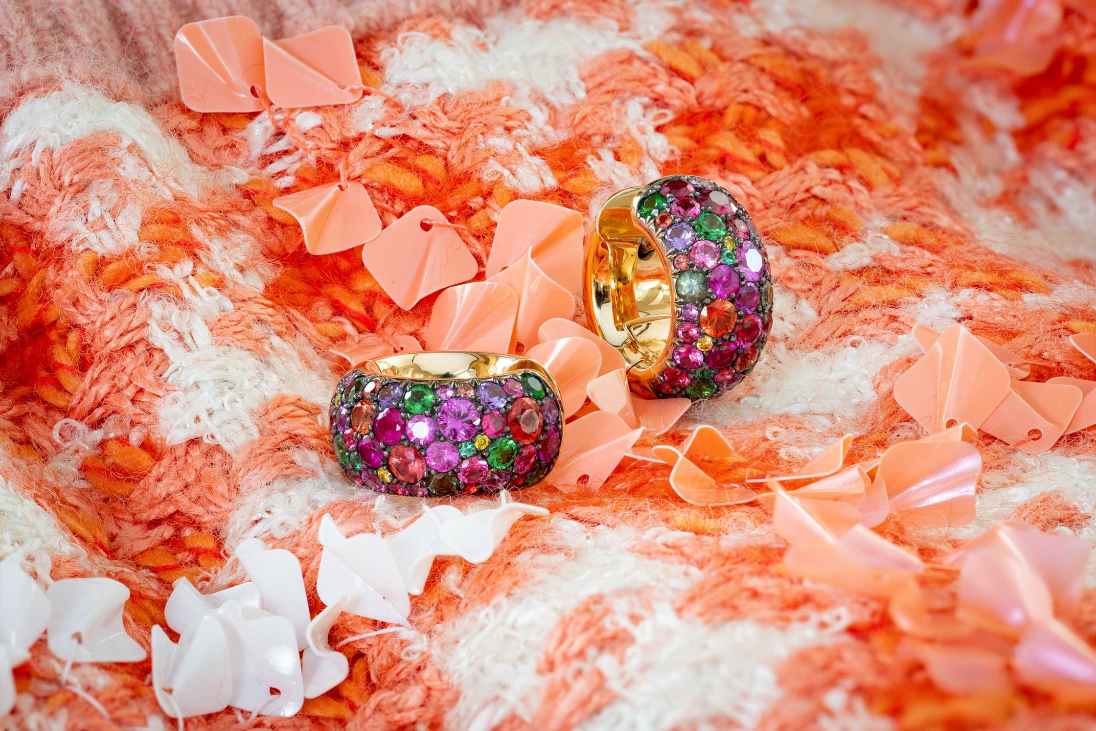 Candy Roségold Creolen mit Spinellen, Safiren in verschiedenen Farben, gelben Brillanten und grünen Turmalinen